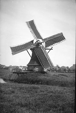 De huizen op de achtergrond zijn de woningen op de Sieger van de Laanstraat, aan de oostkant van de straat. (Informatie met dank aan Remco Hofman) foto gescand van negatief 6x9 op 1200 dpi 90% verkleind waardoor helaas vele details wegvallen |