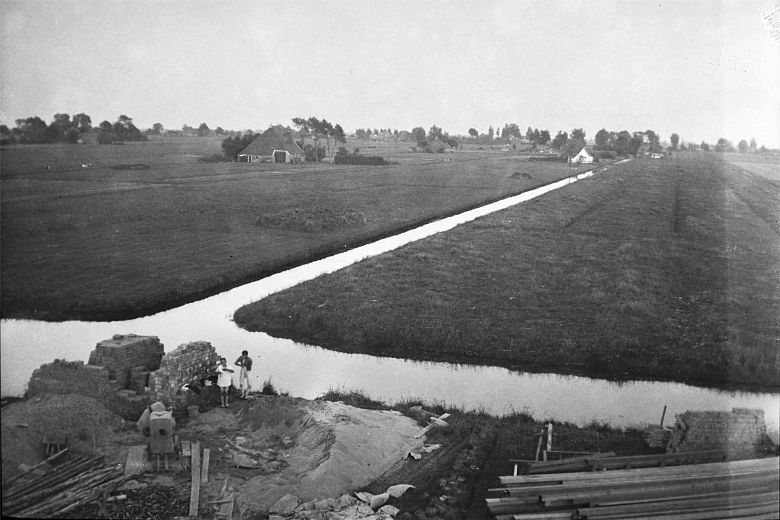 foto, maar nu met verbeterde walbeschoeiing en nieuwe weg foto gescand van negatief 6x9 op 1200 dpi; negatief is nogal verweerd. 80% verkleind waardoor helaas nog details wegvallen |
